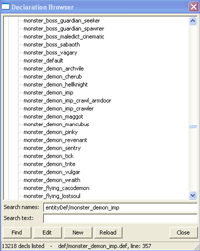 all the decls that are loaded by Doom 3. You can filter for specific
