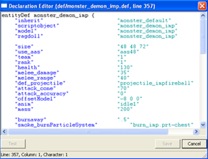 Clicking on a decl and selecting 'Edit' will open that decl in an editor for that specific decl type. For example, sounds will open up in the sound editor, scripts in the script editor, etc. Selecting New will let you create a new decl, and Reload will refresh the list of decls. The Decl Editor